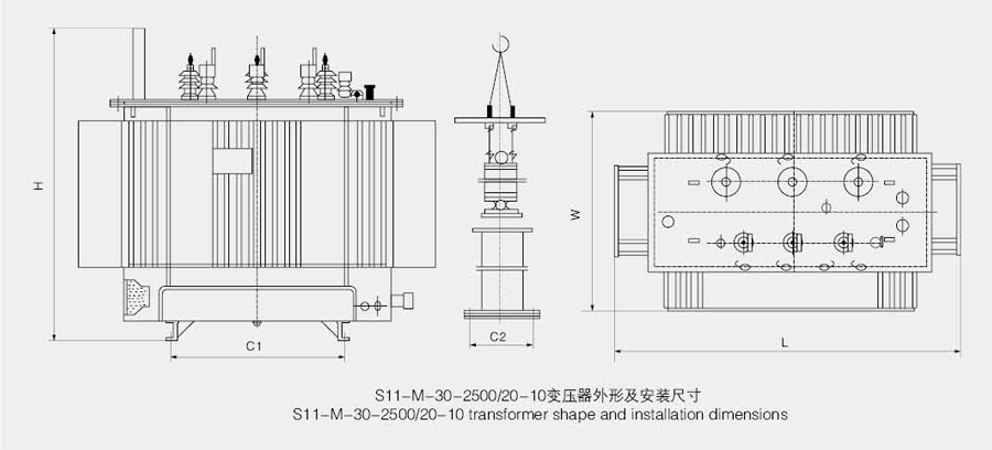 S11-M-30-2000/10型全密封油浸式变压器适用于交流50Hz、额定工作电压10kV及以下的电力系统中,作为石油、冶金、化工、纺织、轻工等企业及粉尘较大场所的配电变压器。
